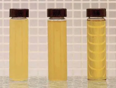 Free water removal in typical turbine oil: bright clear aspect shows absence of free water