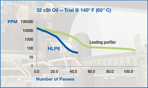 The HLP6 oil purifier showed a 40% faster dehydration rate when compared to a leading, similarly sized purifier.