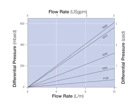 It is recommended that the Max. Flow rate be selected such that the clean element pressure drop does not exceed 0.7 bar (10 psid) for optimal assembly life. Please contact Pall for optimized sizing.