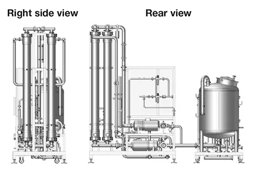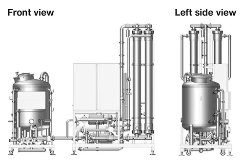 Pall Aria FB systems are fully automated, modular systems that are available in standard packages with 2-12 modules installed (see Table 1 on next page). The 304 stainless steel piping manifolds, pumps, and instruments are mounted on a mobile frame which includes the following: